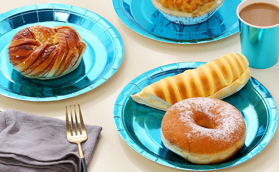 【Metallic Blue Appearance】The shiny surface is peacock blue color with gilding effect. It not only shows metallic blue under the sunshine, but also sparkle indoor. It creates pleasant and happy atmosphere for your table, which is especially for the girls’ princess theme party. The blue color is noble and elegant, fashionable and charming. The color is energetic which display your sincerity for the party. The special color refreshes your party, bring pleasure to your guests at the buffet and dessert table.