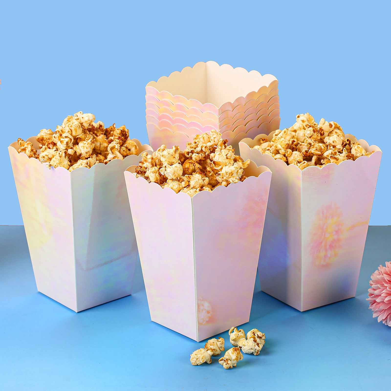 Pink Iridescent Disposable Popcorn Boxes 6.3 Inches Pack of 12