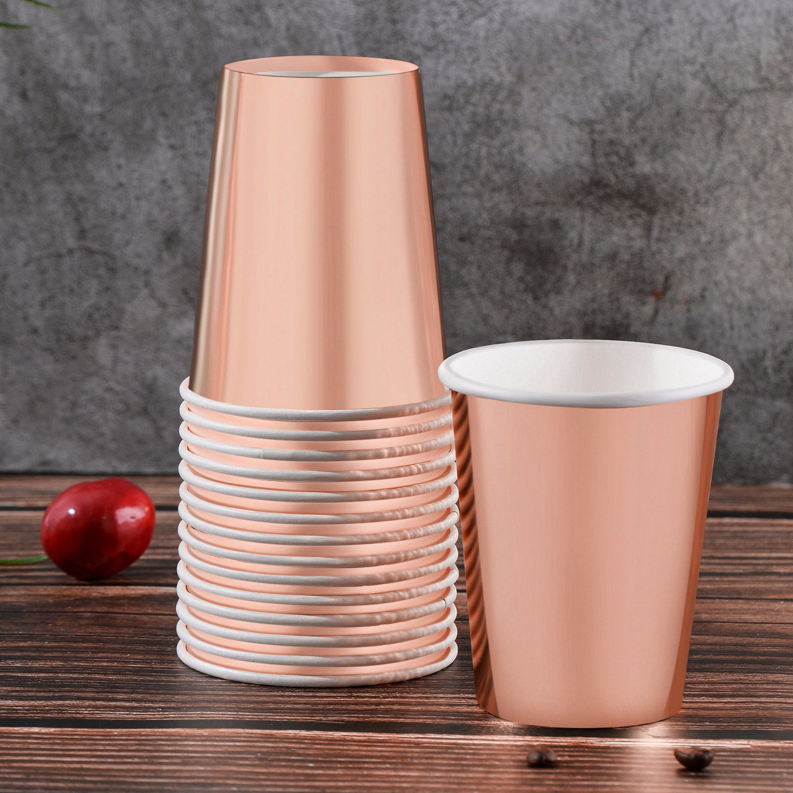 Rose Gold Paper Cups 9 oz [50 pack] Disposable Cups
